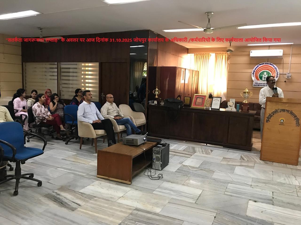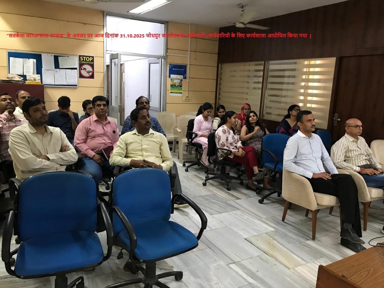 - A workshop on the subject “Role of Vigilance in day to day life” Conducted in the corporate office, Jodhpur for all Staff on 31.10.2025 Discussion such as Corruption free Delivery and Accountability, transparency, fairness, Avoid Discretion, Simplification, and Timeliness and further creating Vigilance awareness through regular inspections carried out during this week, were carried out in this workshop.