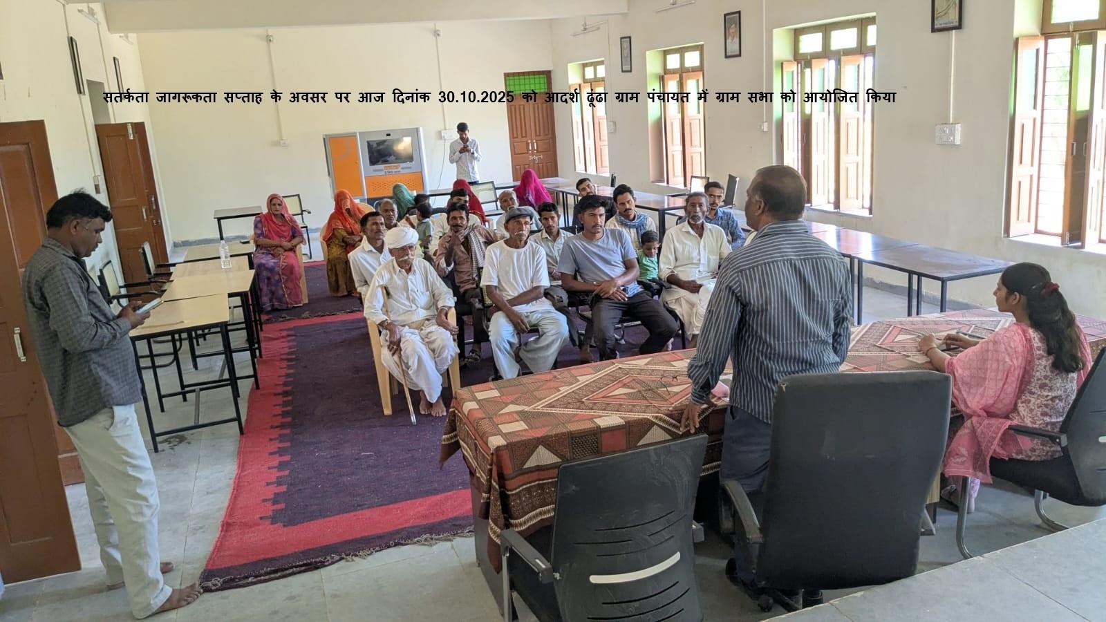 - “Awareness Gram Sabha” organised at Hamira – Jaisalmer and Kavas- Adarsh Dunda – Barmer Gram panchayat Gram panchayat Gram Sarpanch, ward members and social workers also participated in the Gram Sabha. Topic of discussion in Gram sabha was “Vigilance: Our Shared Responsibility.” Everyone also took the vigilance pledge. And Distributed vigilance pamphlets.