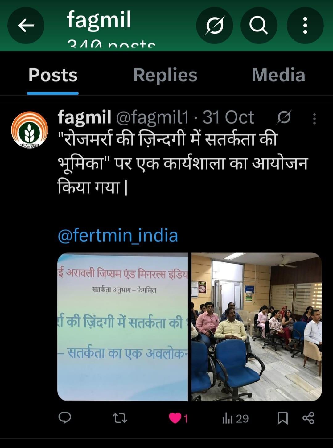 Vigilance Awareness Week was Celebrated at the Corporate office, Jodhpur and the mines Offices of FAGMIL. During this week following activities were carried out in corporate Office, Jodhpur as well as other mines offices: